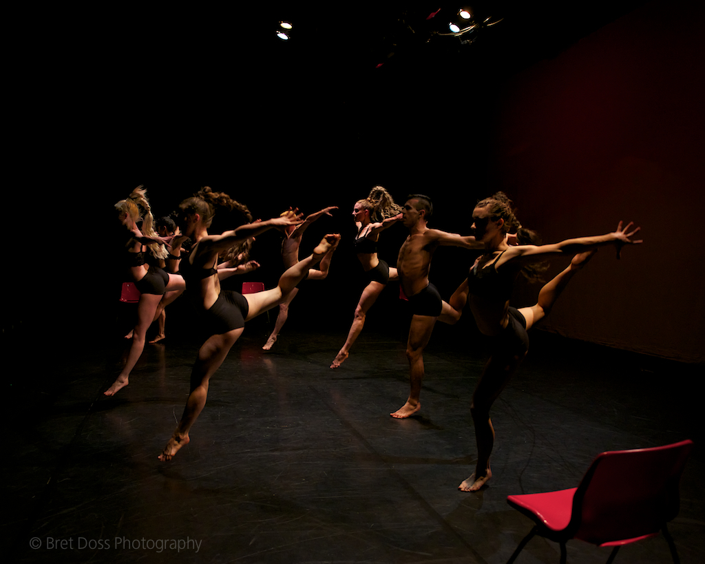 Philip Borunda, Natascha Greenwalt, Marissa Quimby, Andrea Larreta, Hannah Crowley, Christin Call, Roxanne Foster, & Sean B. Cormack in ‘Deciduous Urge’ choreographed by Rainbow Fletcher, image © Bret Doss