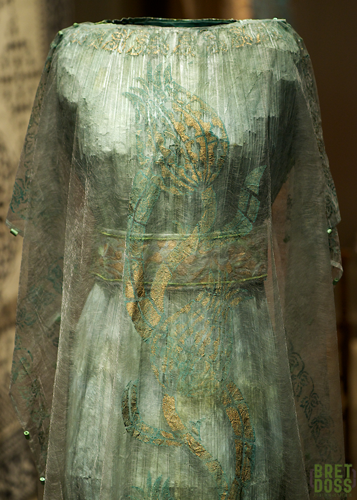 Stefano escorted our group to the exhibit on the third floor, began explaining the background and history of the fashions by Mariano Fortuny and how Isabelle de Borchgrave came upon the idea to create replicas of his (and others’) designs using her medium of choice: paper.