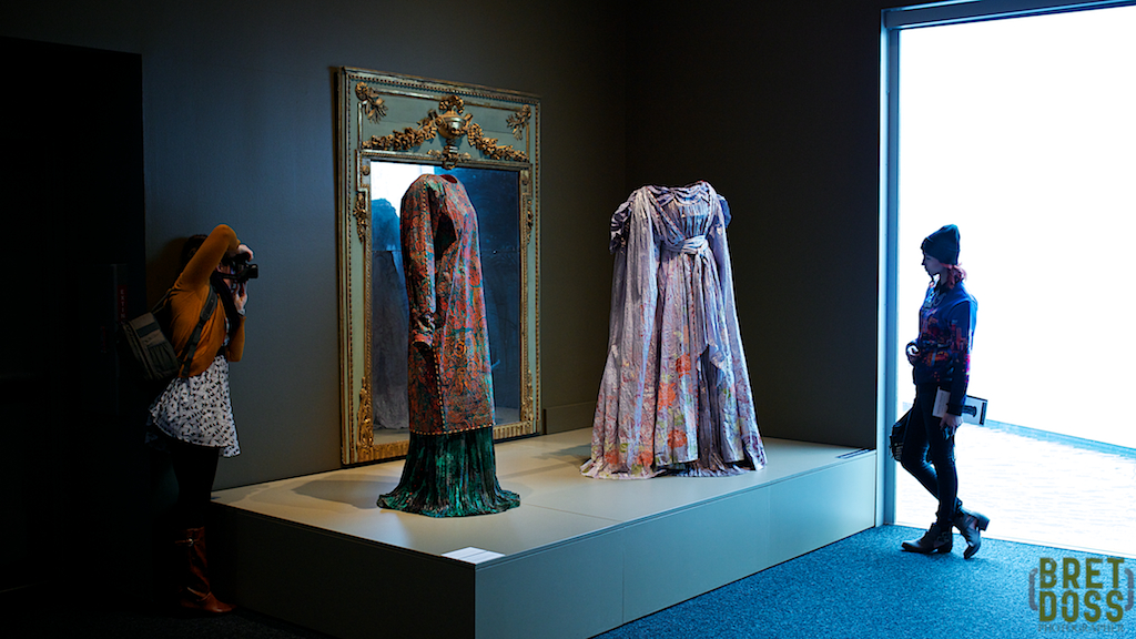 I got home and immediately contacted our Editor-In-Chief Michelle Elalto Cuneta to pitch a piece about the exhibit. She was enthusiastic, and so I contacted our Fashion Editor Alyssa Cave and she was all in (another Team Alyssa and Bret collaboration, so I already considered it a win!). I contacted a visiting photographer friend, Alexis Knapp, to ask if she would like to join us, and perhaps contribute images for the #teamVIVA coverage. With all the YES! responses, we collaborated to figure out the timing, and arrived at the museum just after opening on Friday, obtained our press passes at the desk, and headed to the third floor. It was crowded! We spent an hour and forty five minutes weaving and waiting for chances to make images of every piece on display.