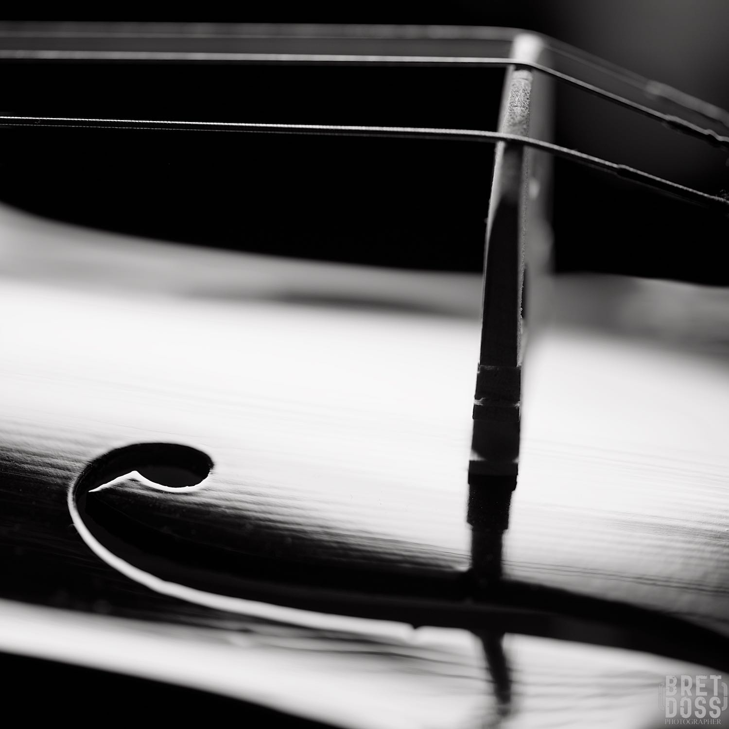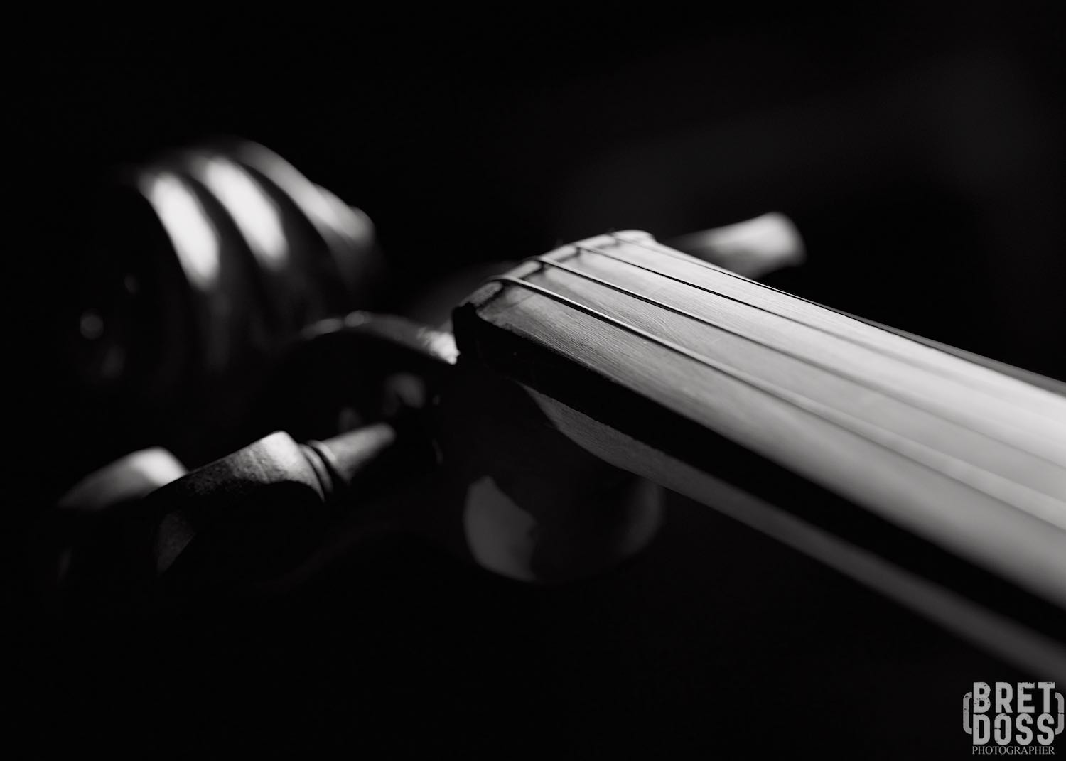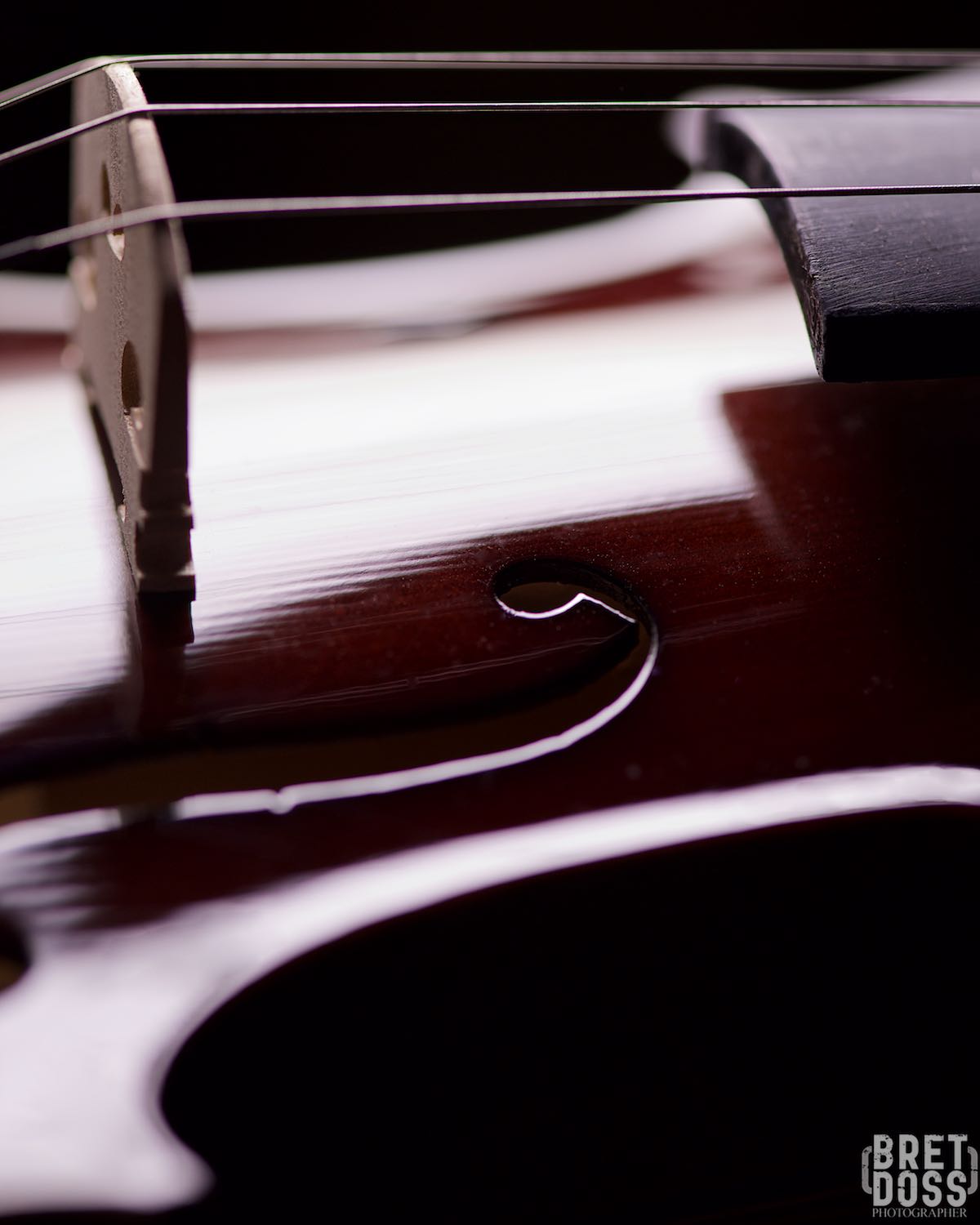 I moved around, above, and below the violin, occasionally rolling the light stand or the violin into slightly different positions for the angle I was photographing. I spent a fair amount of time just shooting whatever details caught my eye and demanded my attention. Using a macro lens kept me close, intimate (I could reach out and touch the violin at any time), and that intimacy was part of what I wanted to convey in the images.