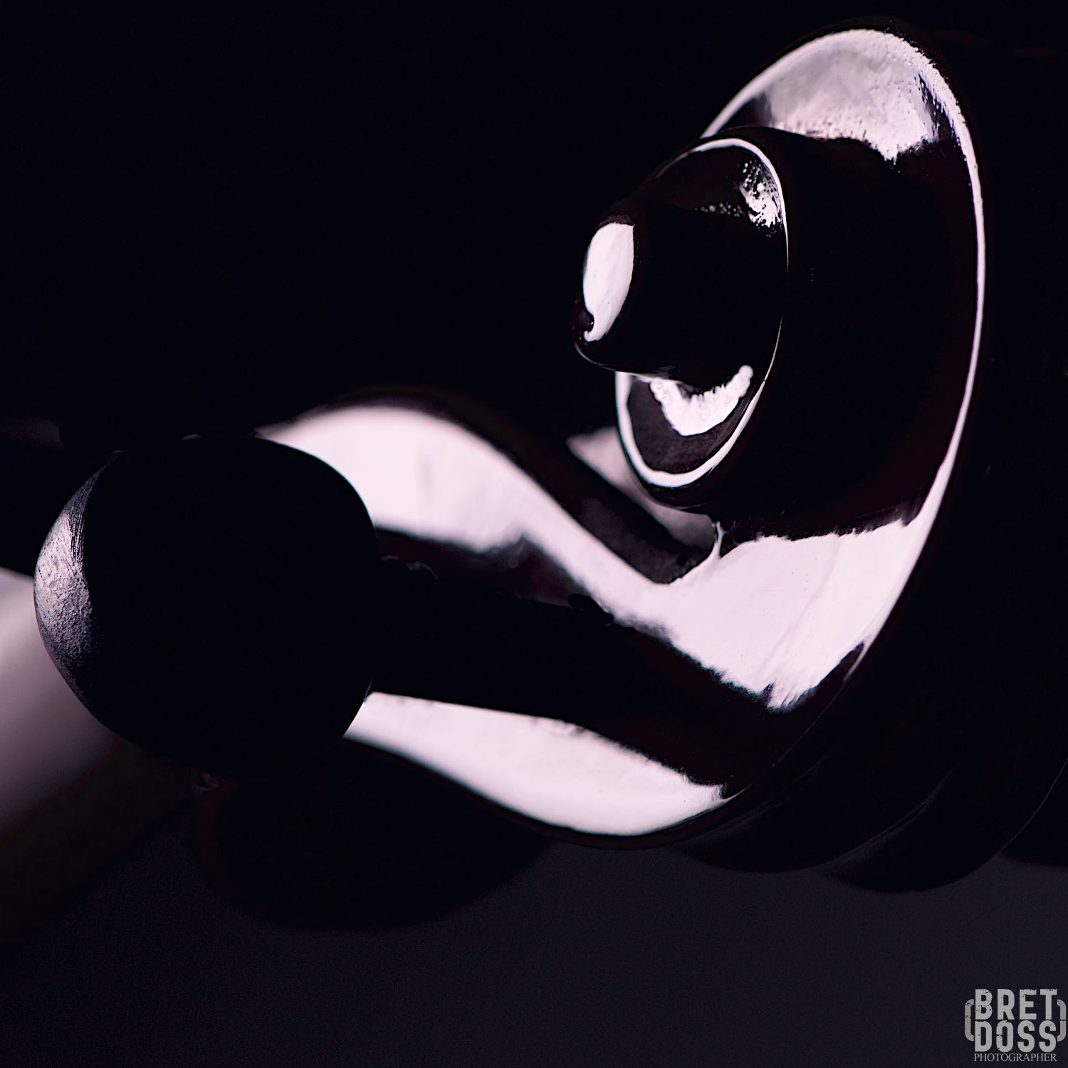 I obtained a violin (I actually obtained two, the second is a more light, white-ish stained wood, but it did not fit the mood and feel of the music). For this shoot, I wanted to use an ‘improvisation’ approach, spending time simply shooting the violin from multiple angles, with shifts in lighting, etc. as they came to me. Basically, no preconceptions, just moving around the violin and seeing it thru the lens, shooting every and any aspect of it that moved me. I clamped it carefully at its base, and extended it from a light stand at about shoulder height (where it would naturally be). I could move all around it, as well as above and below. I didn’t use my usual studio strobes, as for this I wanted to see it as it was and capture the image directly in a more organic, fluid way. My continuous LED lighting (normally for video) was ideally suited to this intention.