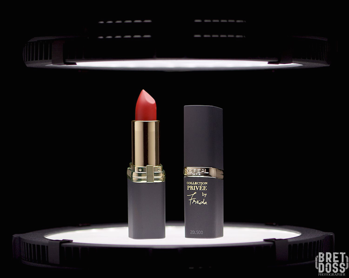 I took a different approach with the Loreal cosmetics, creating a lighting/set approach that makes a modern, stage-like setting. The cosmetics are the heroes of the images, the only source of color, all light directed at the products.