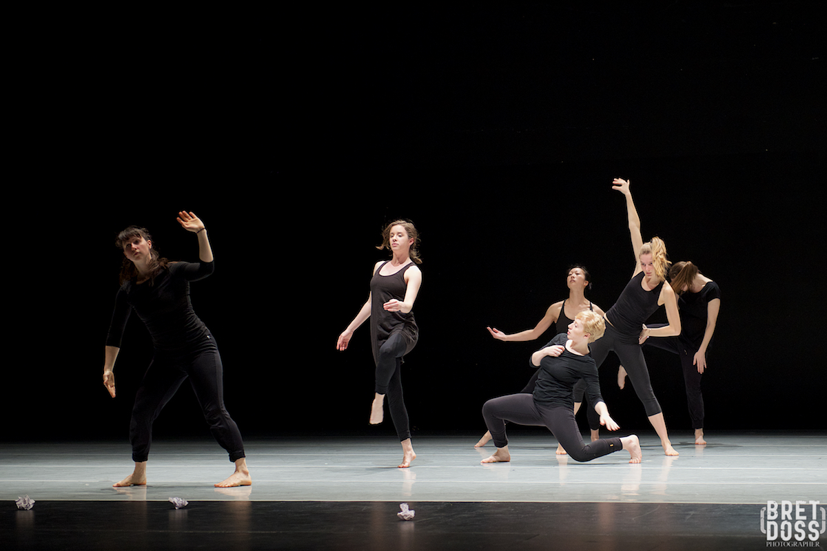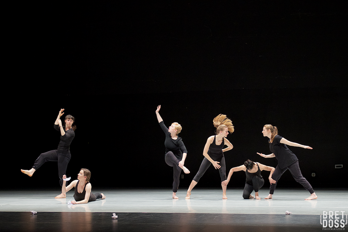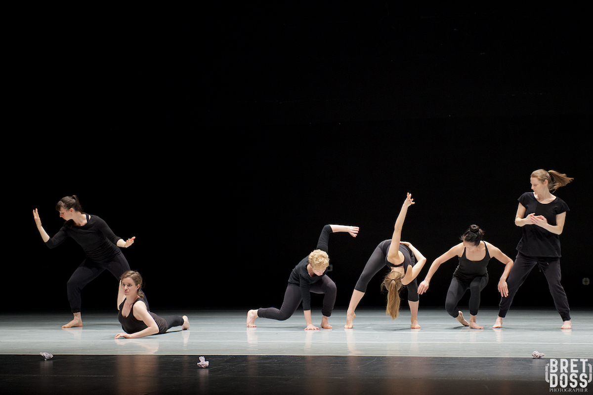 The Stone Dance Collective (l-r) Kim Holloway, Alexandra Kate Beatty Spencer, Emilee Hope Putsche, Tanya Ariana Bendis, Kelly Hui, & Amanda Records, performing Eva Stone’s original work “Carbon Black and Fiber” — image © Bret Doss All Rights Reserved